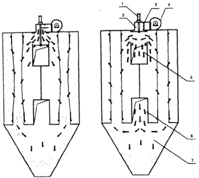 1-提升切換閥;2-反吹風管;3-截止閥;4-反吹風機;5-排氣管;6-進風管;7-灰斗