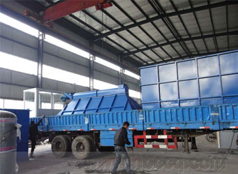 浙江寧波北倫電廠粉煤灰處理用PPC96-8布袋除塵器運抵現場,正在卸車。