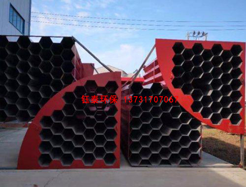 煤氣發生爐電捕焦油器,蜂窩式電捕焦油器與管式電捕焦油器相比,其主構造類似。蜂窩式電捕焦油器是將通道截面由圓形改為正六邊形。兩個相鄰正六邊形共用一條邊,內部的正六邊形的六條邊均被包圍它的六個正六邊形所共用