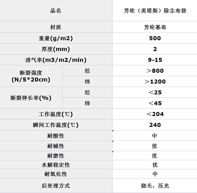 瀝青攪拌站美塔斯除塵布袋可在204度下連續(xù)使用,并可承受反復(fù)的250度瞬時(shí)波動(dòng)溫度,尺寸穩(wěn)定性好(250度時(shí)熱收縮率1%),防火性能好,400度時(shí)才分解碳化,不自燃也不助燃,低濃度的酸堿和大多數(shù)碳?xì)浠衔飳?duì)它無影響,良好的化學(xué)性,適用于瀝青混凝土攪拌瀝